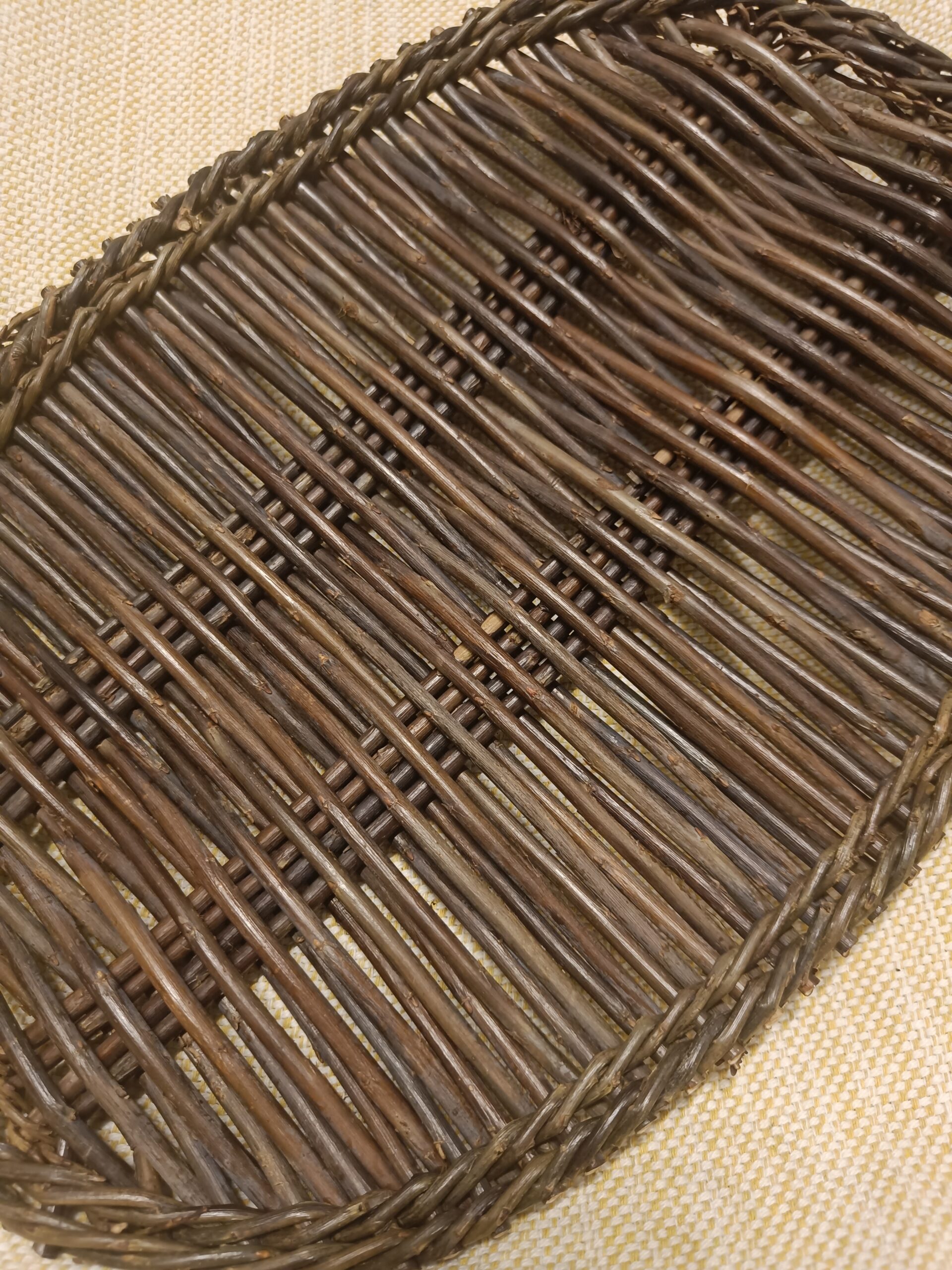 This grey tray fits well into clean, modern interiors. Its simple form combined with the natural tone of willow gives it a refined yet understated look.