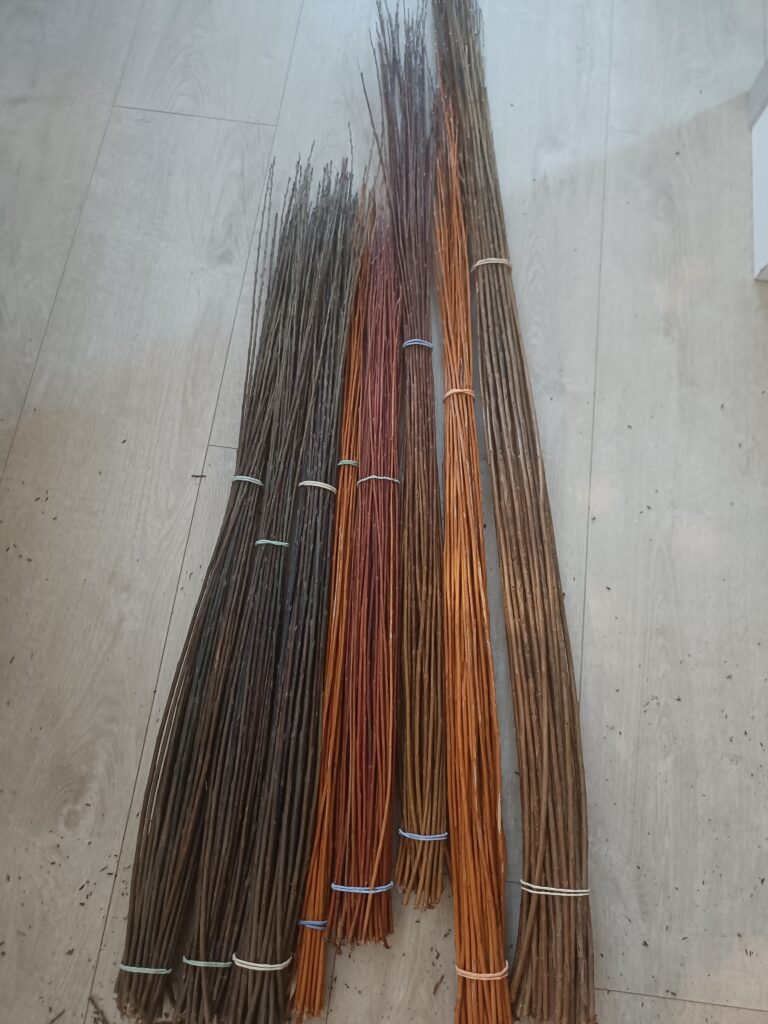 Locally grown willow, multiple varieties, prepared for crafts and weaving.